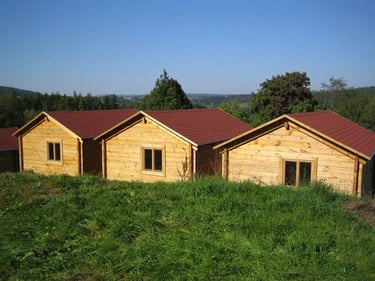 Dřevěné chatky v přírodě, pet-friendly a blízko.