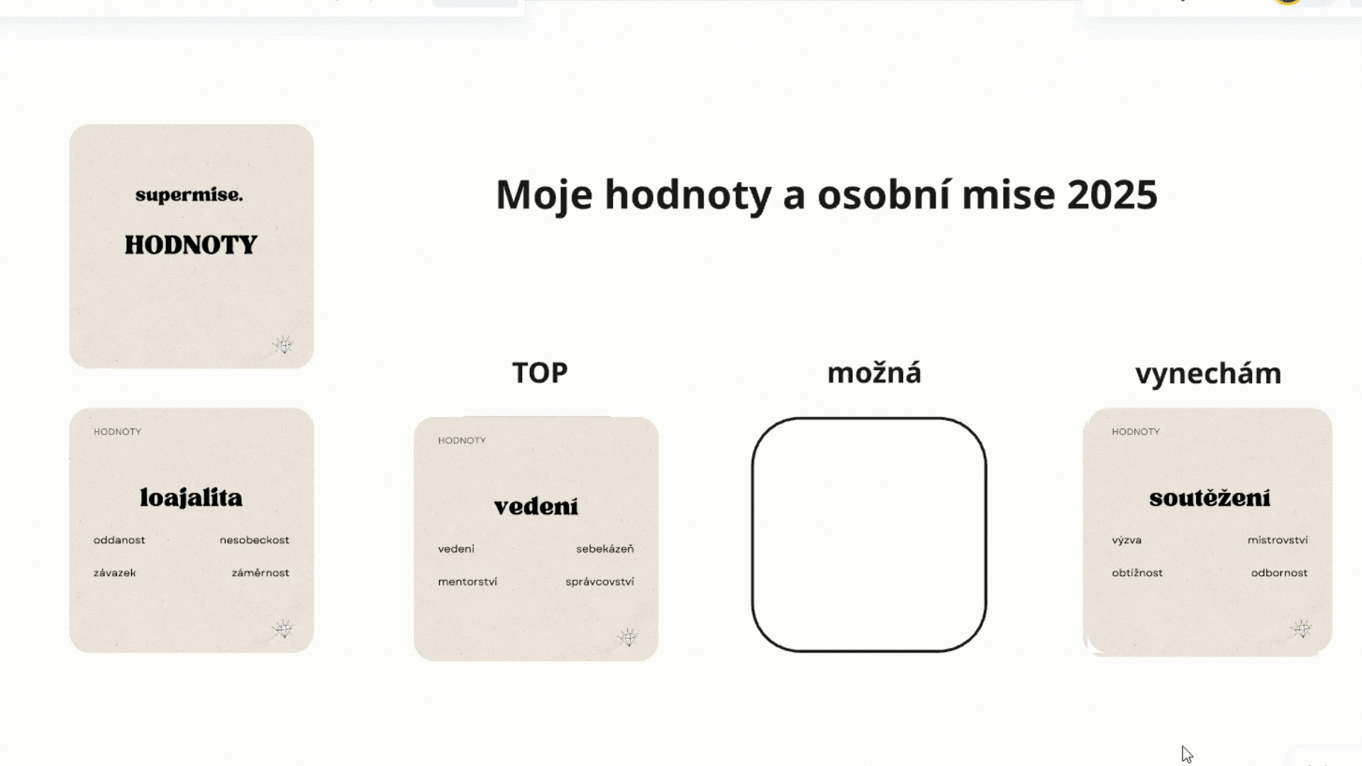 S hodnotami pracuji dlouhodobě. Proces byl jednoduchý a ujistilo mě to, že mám hodnoty nastavené dobře. Moc mě překvapilo, co jsem zažila ve vizualizaci.